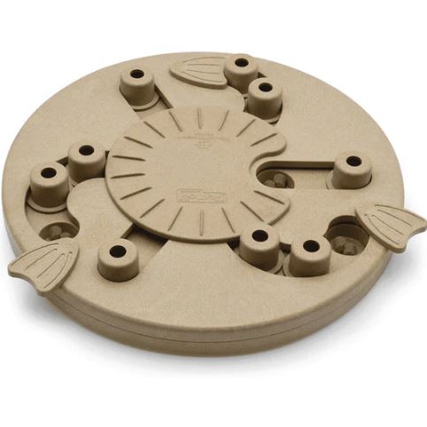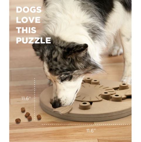 Its spin, slide, and swivel mechanisms make every play session mentally enriching. Dogs need to rotate the center top, slide cups, and twist flaps to reveal the treat compartments. With no removable parts, it is safer and more durable for frequent use. Measuring 11.6 inches in diameter, it offers ample space for dogs to explore and work through the puzzle at their own pace.