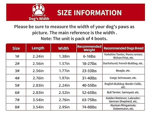 - How to Measure: Measure paw width at the widest point when your dog is standing with full weight on the paw. Place paw on paper, mark the widest points, and measure the distance.