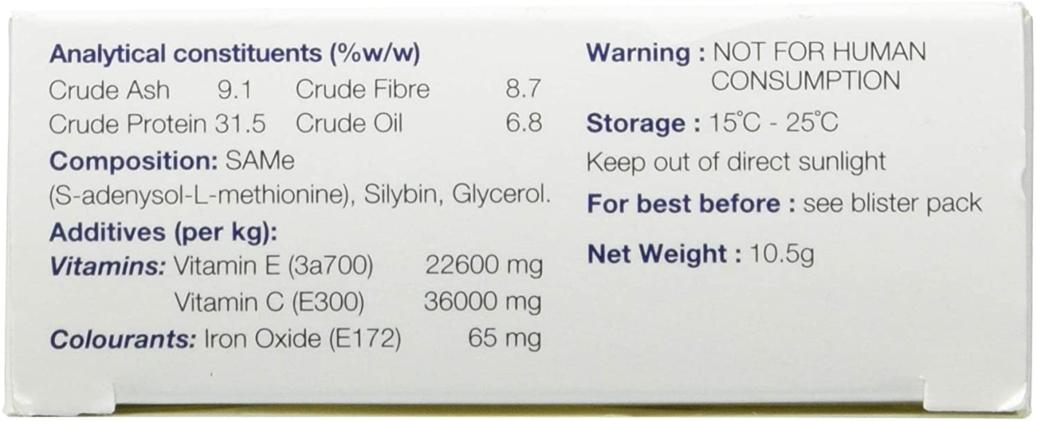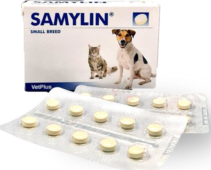 VetPlus Samylin For Small Breed Dogs & Cats - 30x0.35g Tablets is a type of liver protector for Small Dogs (up to 10kg) and Cats in tablet form. Pets with liver problems can be affected by impaired metabolic and detoxifying functions as well as impaired nutrient storage.