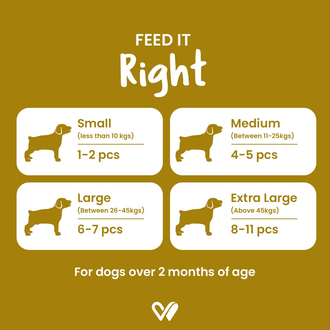 • Medium dogs (10-25kg): 4-5 pieces daily